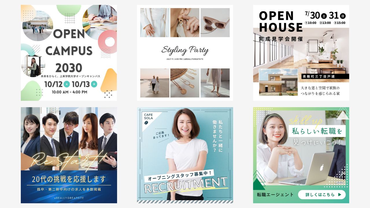 - テキストは短く大きく(「SALE」「無料体験」など)
