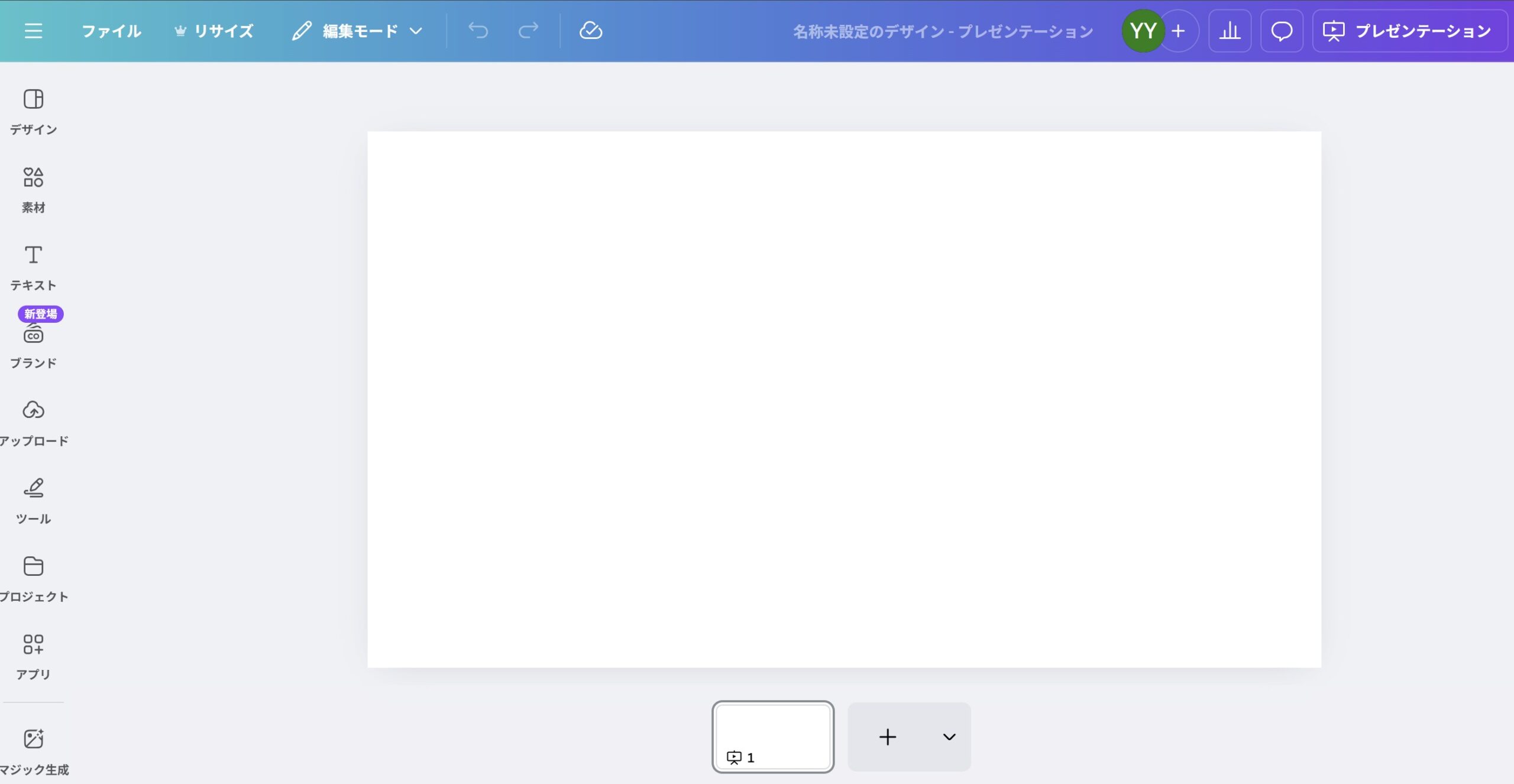 プレゼン資料に適した縦横比「16:9」のキャンバスが作成されます。