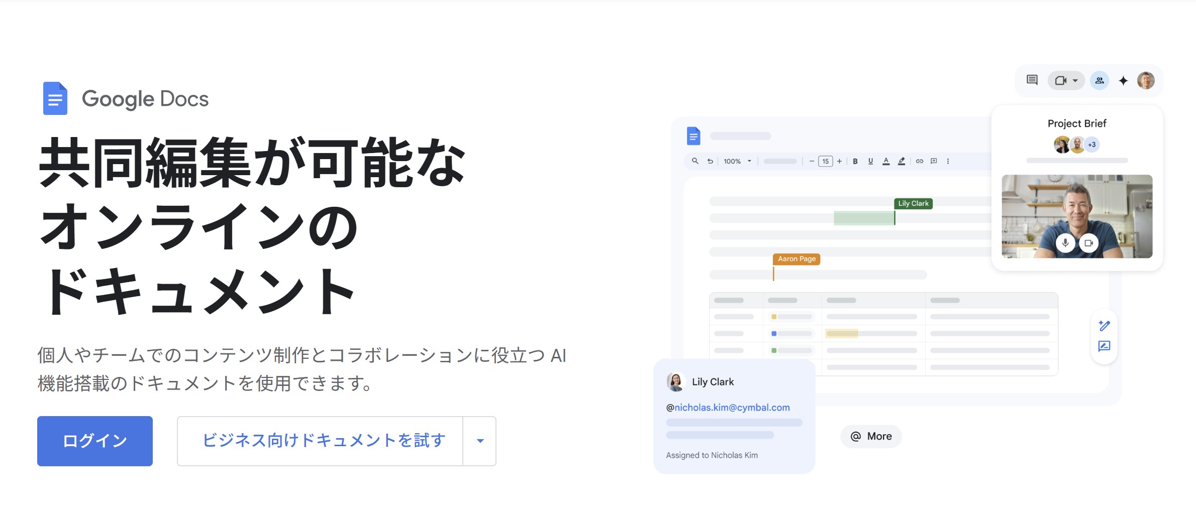 - Googleドキュメント → 無料・オンライン・共同編集に強い