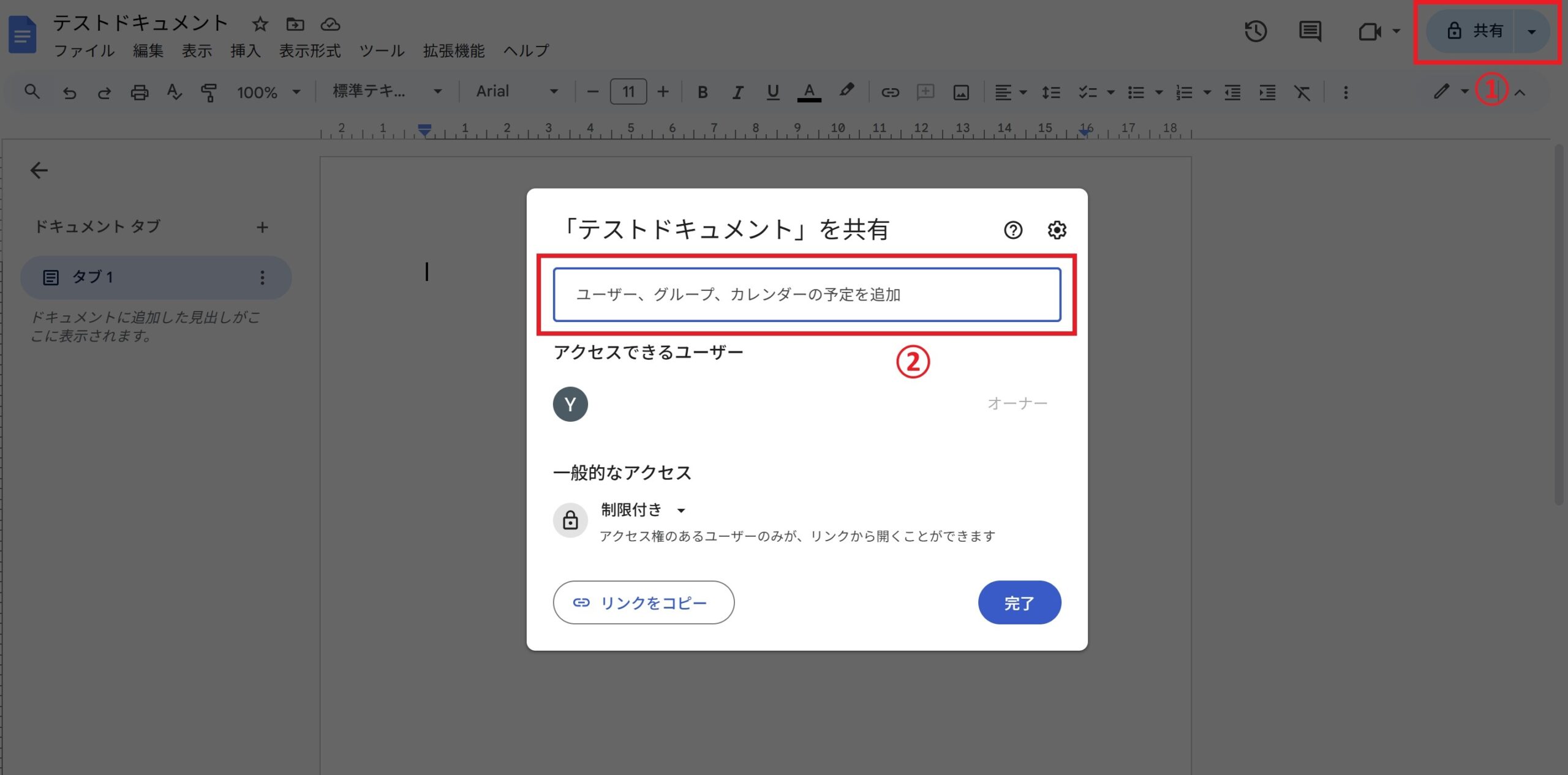 作成したドキュメントは、他の人と共有して「共同で編集できるように設定」したり、「閲覧だけを可能」にしたりと、共有する上での設定が可能です。