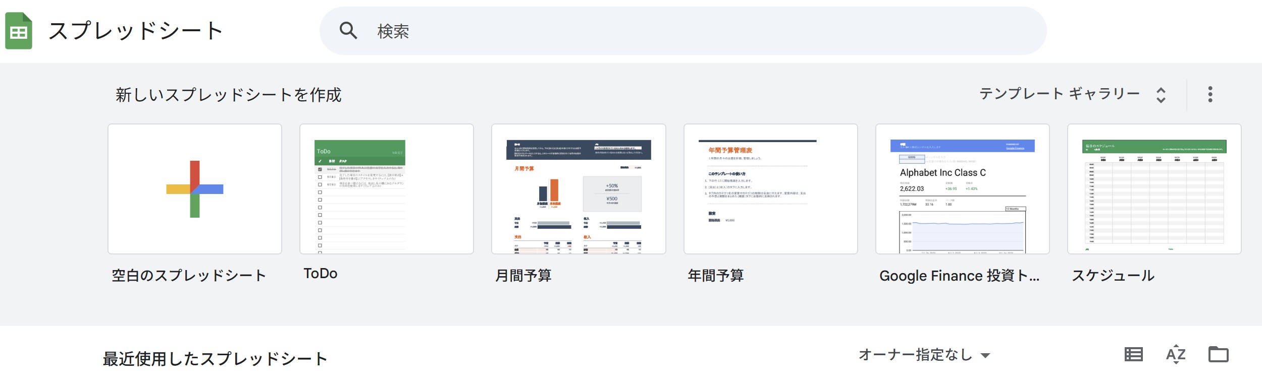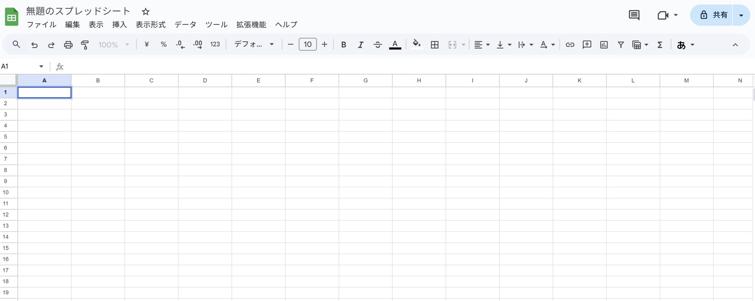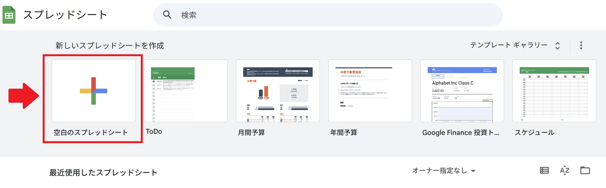 「空白のスプレッドシート」をクリック → 新しいシートが作成されます。