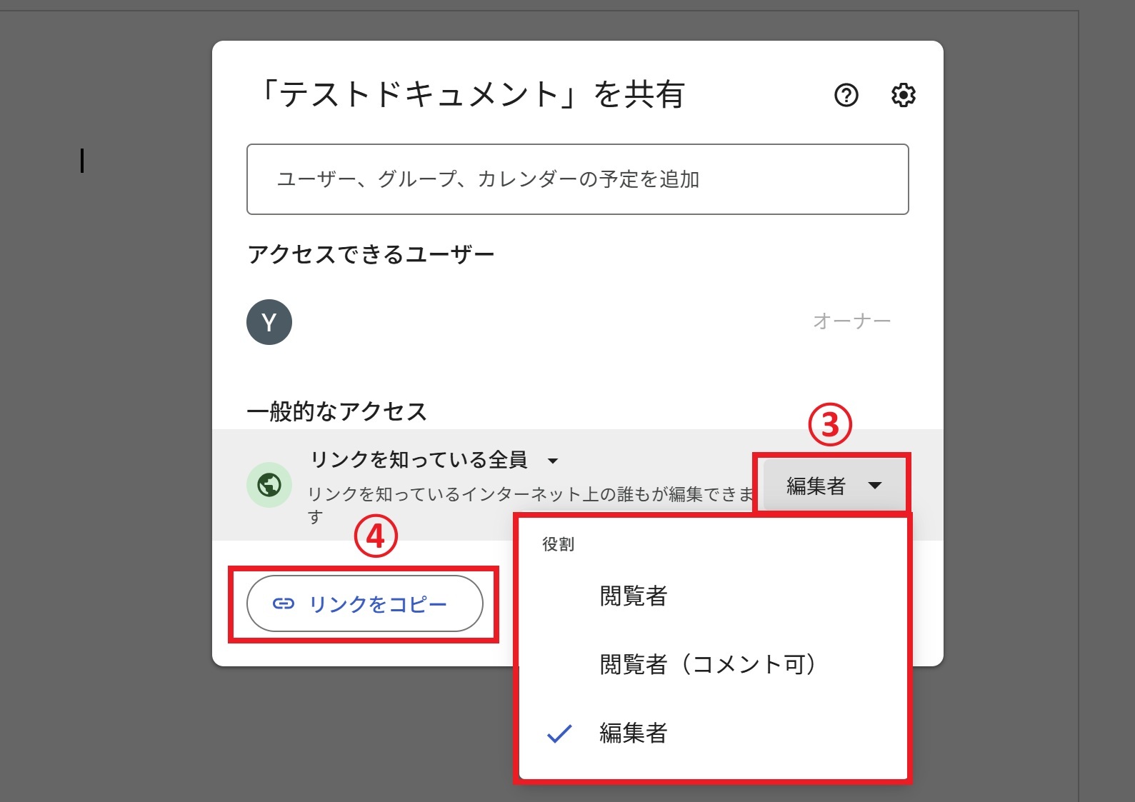 - 共有は「メールアドレス指定」または「リンク共有」で権限設定可能