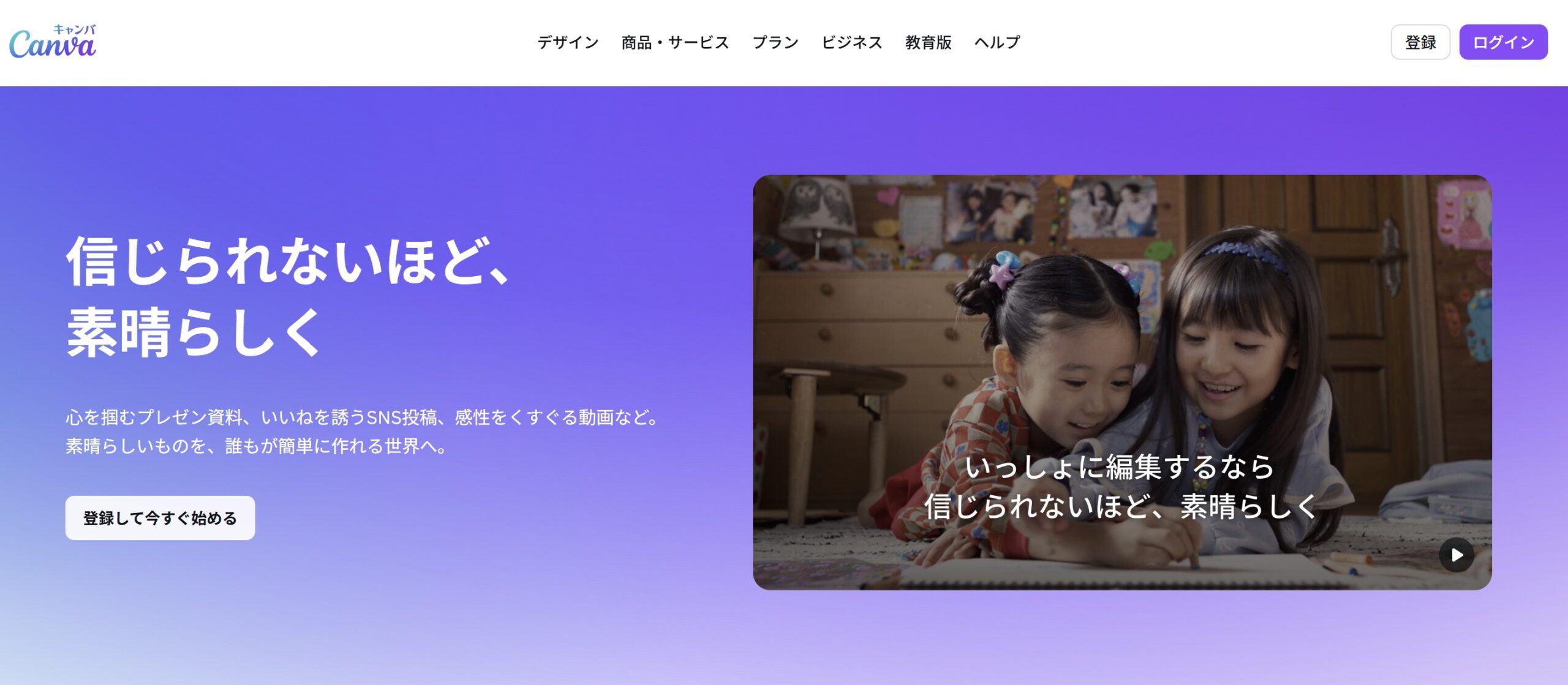 - Canva公式サイト:https://www.canva.com にアクセス