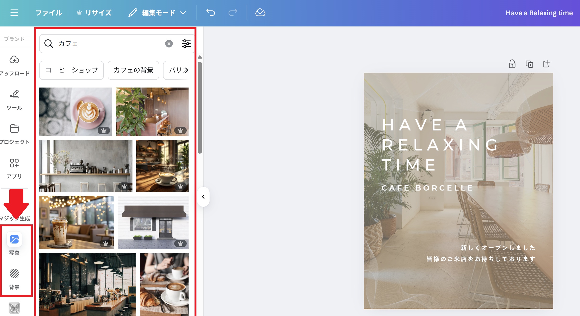 - イメージに近いテンプレートを選び、作成したい画像のテイストに合わせて調整
