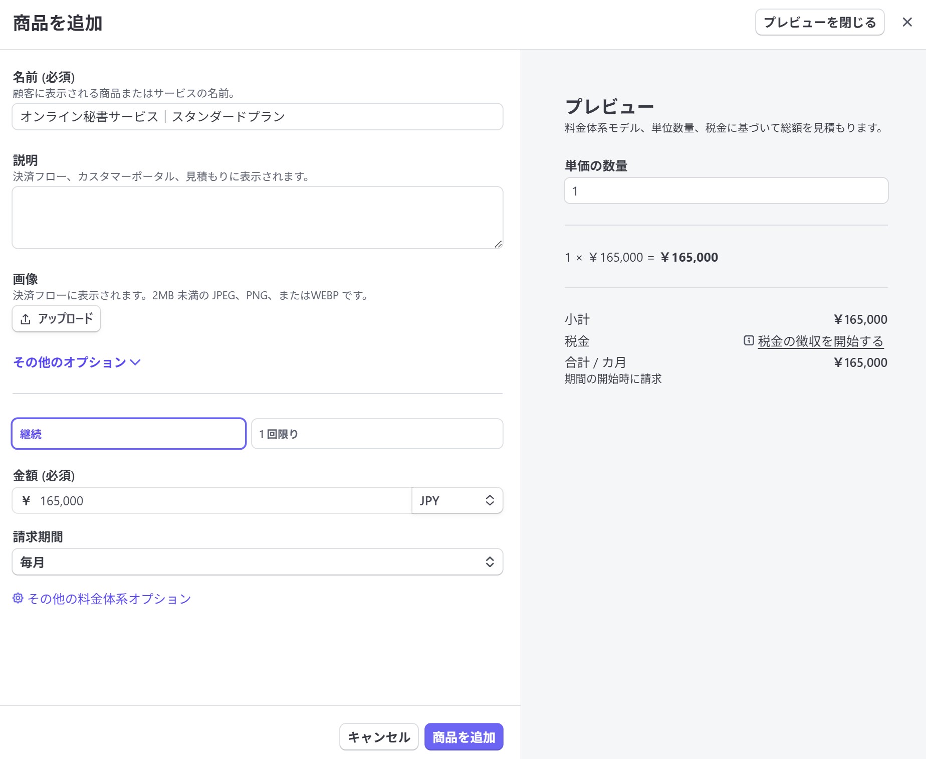 - 請求内容(商品/価格・数量)を追加