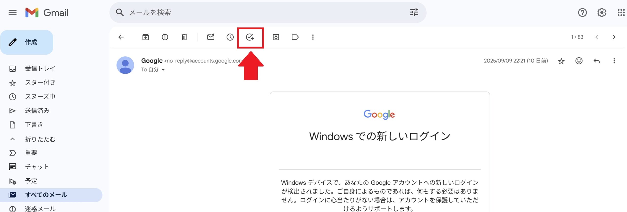 ツールバーにある「チェックマーク」をクリックするだけで、そのメールがタスクに追加されます。