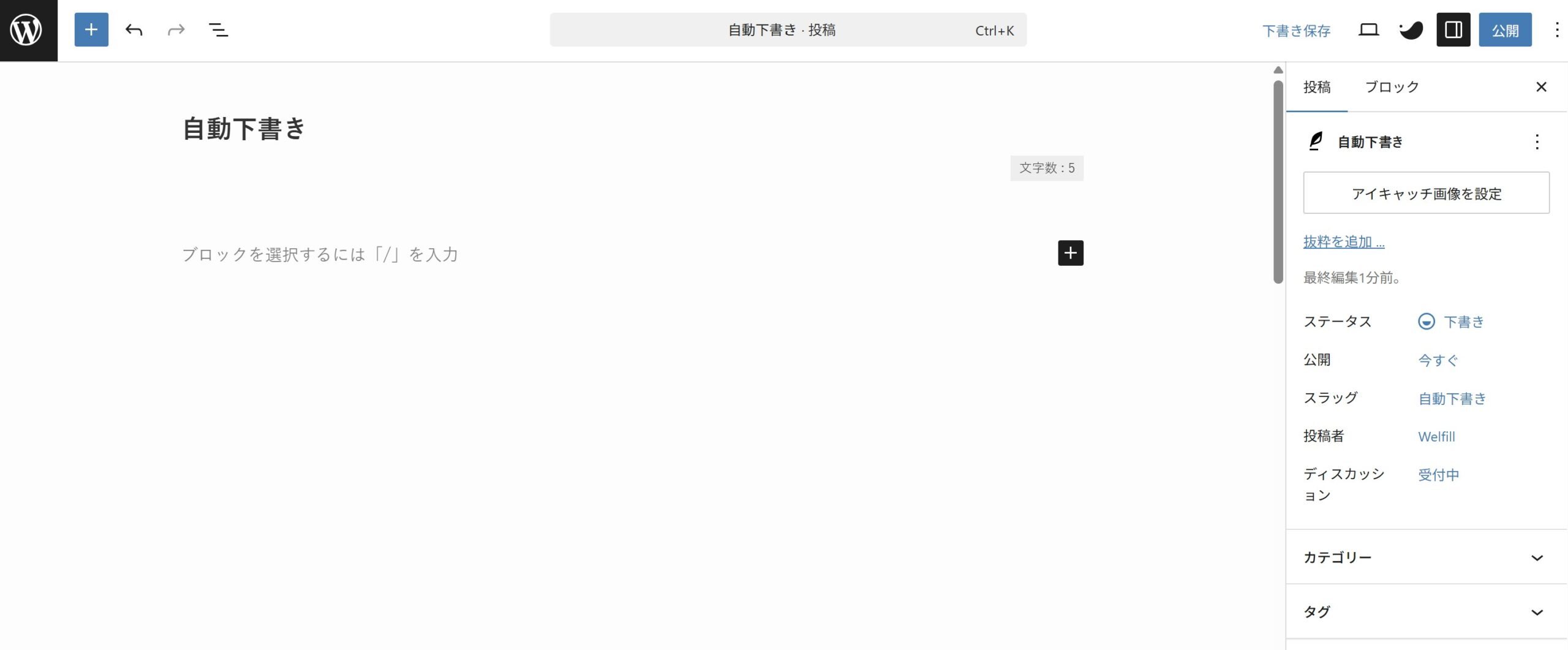 | 画像挿入 | エディター内にドラッグ&ドロップ | 「画像ブロック」を使って簡単に挿入 |